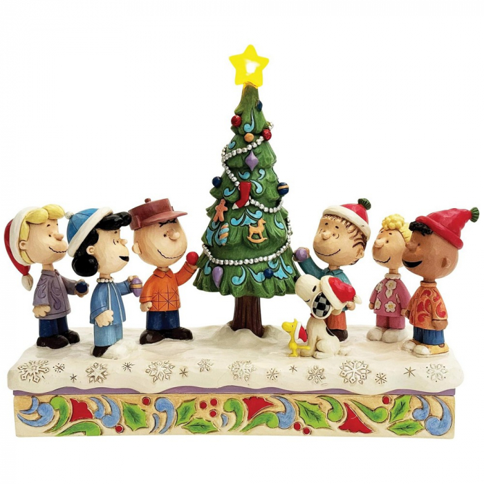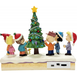 Immerse yourself in the nostalgic world of Peanuts with this exceptional figurine. Its light displays and enchanting melodies enhance your holiday decor in finely crafted resin. A sound and light treasure for a magical Christmas. Height: 20,5cm.