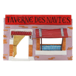 Asterix, la Taverne des Nautes, inspired by the album Le Tour de Gaule d'Astérix. A collection dedicated to the iconic shops of the Asterix universe. Numbered and limited to 250 copies with certificate of authenticity. Scene dimensions: 15x5x9cm.