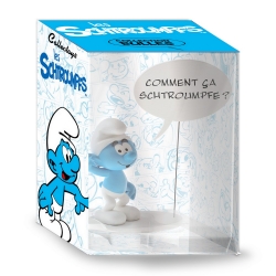 The Smurf with sign Comment ça Schtroumpf!. Statue entirely made of resin and hand painting from Plastoy. Height: 20cm