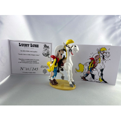 Lucky Luke laughing with Jolly Jumper. Pixi Atomax collectible hand painted figurine collection . Limited edition and numbered 245 copies with certificate of authenticity. Height: 9,5cm.