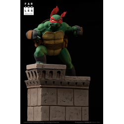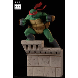 Resin figurine made by Pascal Rodier assembled and handpainted in Fariboles Productions Workshop (100% Made in France). Teenage Mutant Ninja Turtles: Raphael Limited edition and numbered 750 copies with certificate of authenticity and original drawing by Mateus Santolouco. Height: 30cm.