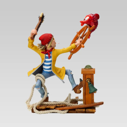 Grogro and his skewer of small chickens and small rabbids, one of the main characters of the Dungeon Zenith comics series, by Lewis Trondheim & Joann Sfar, arrives in the European statues collection!