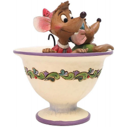 Collectible resin figurine Disney Traditions by Jim Shore, Cinderella: Jaq and Gus. Jaq and Gus peer over Lady Tremaine’s teacup as they hatch a plan to steal the key they need to free Cinderella. Designed by award-winning sculptor Jim Shore for Disney Traditions, the figurine is crafted from stone powder, hand-painted and comes in a beautiful branded gift box. Height: 12cm.
