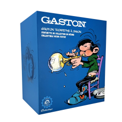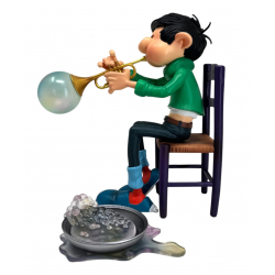 Gaston Lagaffe's inventions, soap bubble trumpet. High quality collectible resin figurine, hand painted. Height: 16cm.