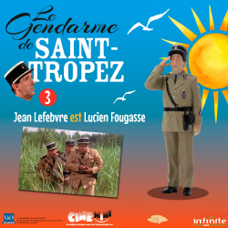 Finally, the gendarme Lucien Fougasse, played by the unforgettable Jean Lefebvre, completes this first series with a figurine full of charm and tenderness. His good nature, his legendary clumsiness and his touching smile are reproduced with rare fidelity. Height: 10cm.