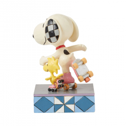 Collectible resin figurine by Jim Shore, Peanuts Snoopy with Woodstock, Roller skating. Designed by award-winning artist and sculptor Jim Shore. Height: 13cm.