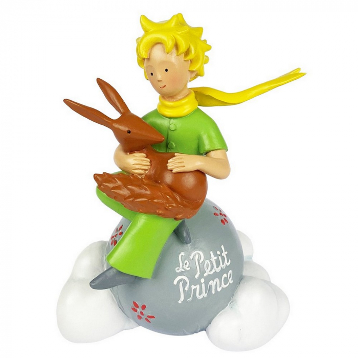 This hand painted resin figurine of The Little Prince and Fox on his planet is inspired by the work of Antoine de Saint-Exupery and was created by Enesco. Height: 16,5cm.