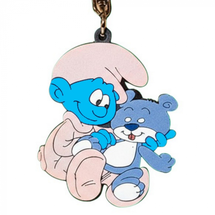 Collectible soft rubber Keychain The Smurfs: Baby Smurf with Teddy. A vintage Schleich collectible combining marine elegance and nostalgia, perfect for enhancing your accessories.