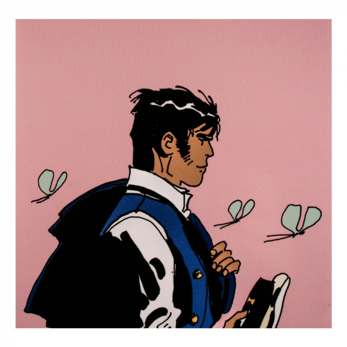 Postcard of Corto Maltese, Corto without women. Illustrated by Hugo Pratt. 14x14cm.