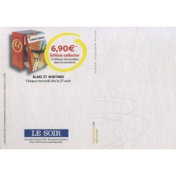 Postal card edited by Le Soir of Blake and Mortimer: By Jove !!! Les 12 premiers albums d'Edgar P. Jacobs avec Le Soir chaque Mercredi dés le 27 août !!!
