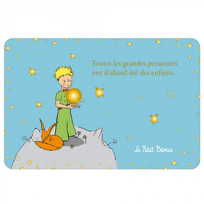 Kiub Postcard The Little Prince holding Saturn. 15x10cm.