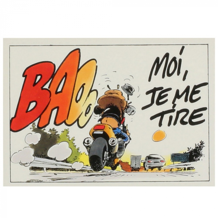 Collectible postcard published by the Lucane company in 1996, Bar2 Fane Joe Bar Team: Moi je me tire ! Dimensions: 10x15cm.