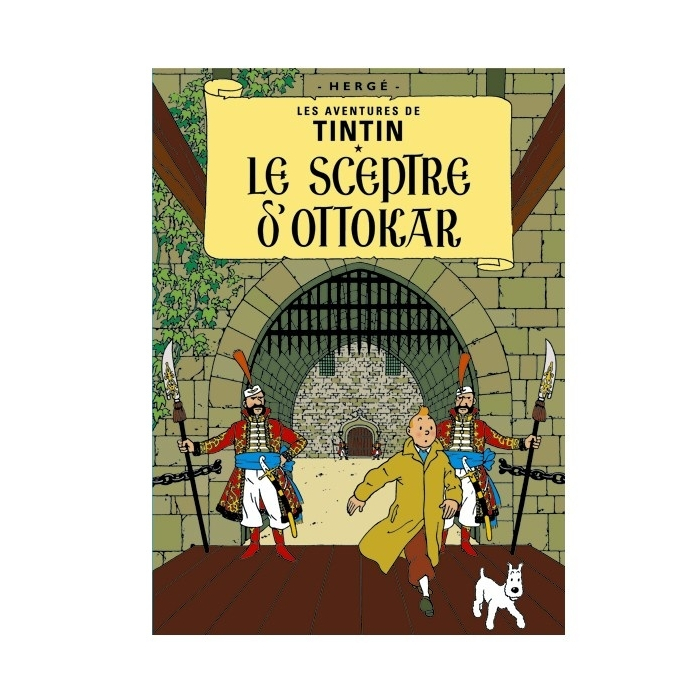 This postal card represents the original album cover of Tintin in French: Le sceptre d'Ottokar.