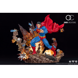 Clark Kent may be the ultimate Boy Scout, but he also knows when to mean business, especially when taken on by an entire army. Oniri Creations has created this diorama showing Superman like he’s rarely been potrayed in statue form. Translating an author's art in 3D is no easy task. Going the realistic route wasn’t going to work here, so our sculptor went for a very stylized and chiselled anatomy instead.