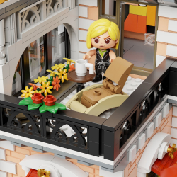 Pantasy Modular Building Collection Set: the Blossom Café. A three-story European-style street building, surrounded by flowers and greenery, creates a warm and peaceful atmosphere. The set consists of 2850 pieces. The recommended minimum age is 6 years. Includes an instruction manual. Height: 42cm.
