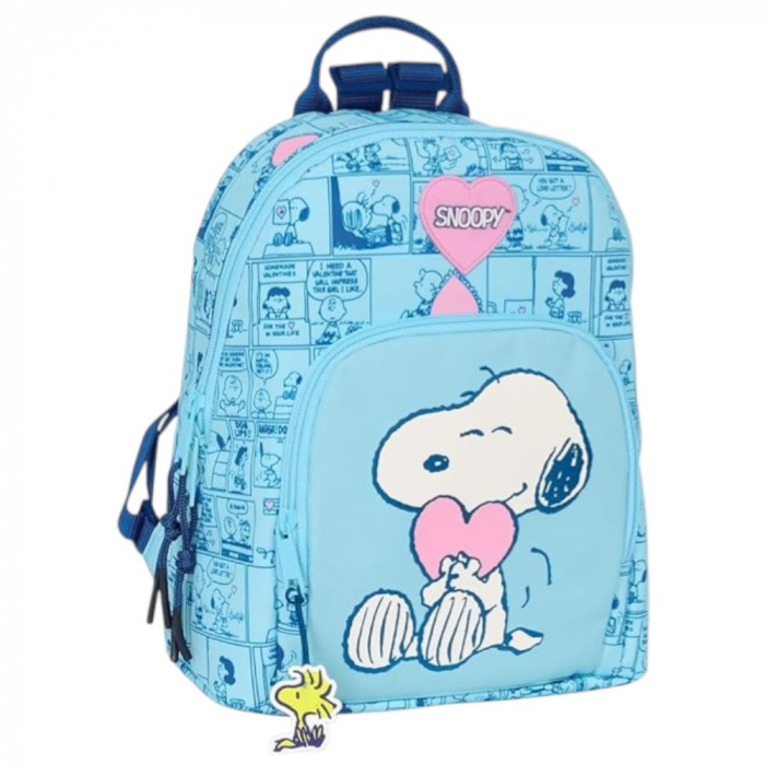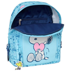 Safta Backpack Peanuts, Snoopy: Heart. Made of highly resistant polyester material with smooth zippers. It features a large-format front zippered pocket and a double puller on the main zipper. Includes an interior pocket and a back pocket, both with zippers. Equipped with adjustable shoulder straps for added comfort and a top carry handle. Dimensions: 25x13x30cm.