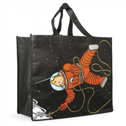 Semi-Waterproof Bag Tintin: Explorers on the Moon. Visual of Tintin cosmonaut on one side and on the other side Haddock cosmonaut. Dimensions: 45x38x20cm.