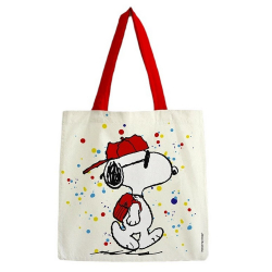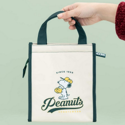 Isotherm Lunch Bag Erik, Peanuts Snoopy. The interior is aluminum while the exterior is polyester. This will keep food cold or hot. Mesh pocket on the side to put your water bottle. It has a zipper and a fabric handle for easy carrying. Dimensions: 20x13x23cm.