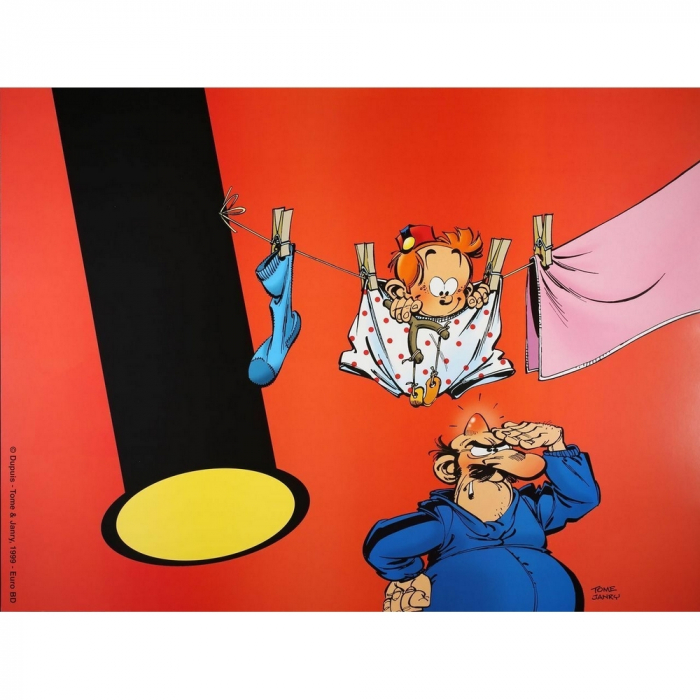 This poster of Tome & Janry, is extracted from the series Young Spirou. It is printed in offset quality and has a format of 40x30cm. Young Spirou and Gym Teacher Mr Mégot.