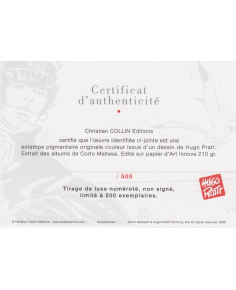 This art offset poster derived from Hugo Pratt Corto Maltese comic book is printed on fine art paper similar to a pigment print. Limited edition of 500 units with numbered certificate of authenticity. 35x60cm. Pacific.