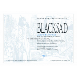This art pigment print poster derived from Juanjo Guarnido's Blacksad comic book is printed on a Innova 210g paper. Limited edition and numbered 500 copies with certificate of authenticity. 60x30cm. Jazz n' Fun's Club.