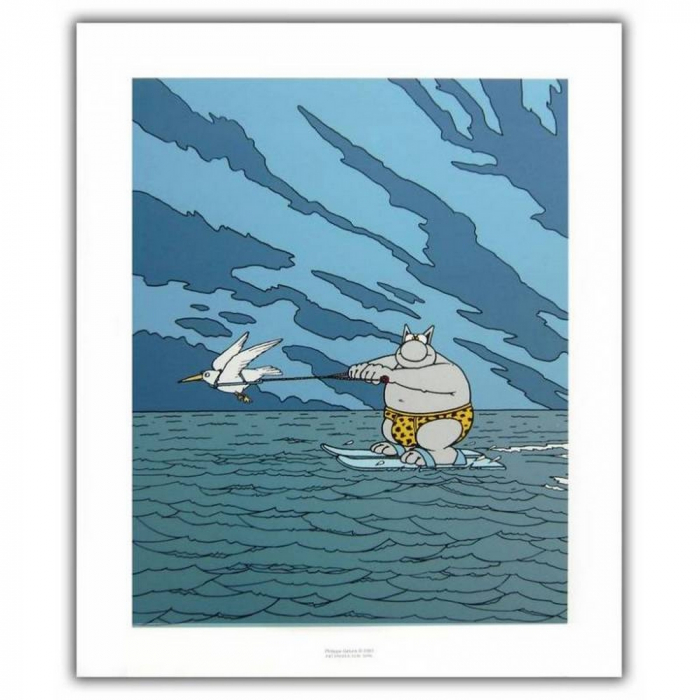 Poster offset P & T Production Philippe Geluck The Cat: Water skiing. 50x60cm.