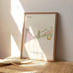 Official art edition printed on 220g cream laid paper. Frame not provided. Each poster has a dry stamp at the bottom right attesting to its authenticity. Printed in France. Reproduction of an illustration from the work of Antoine de Saint-Exupéry: The Little Prince and the Fox playing.