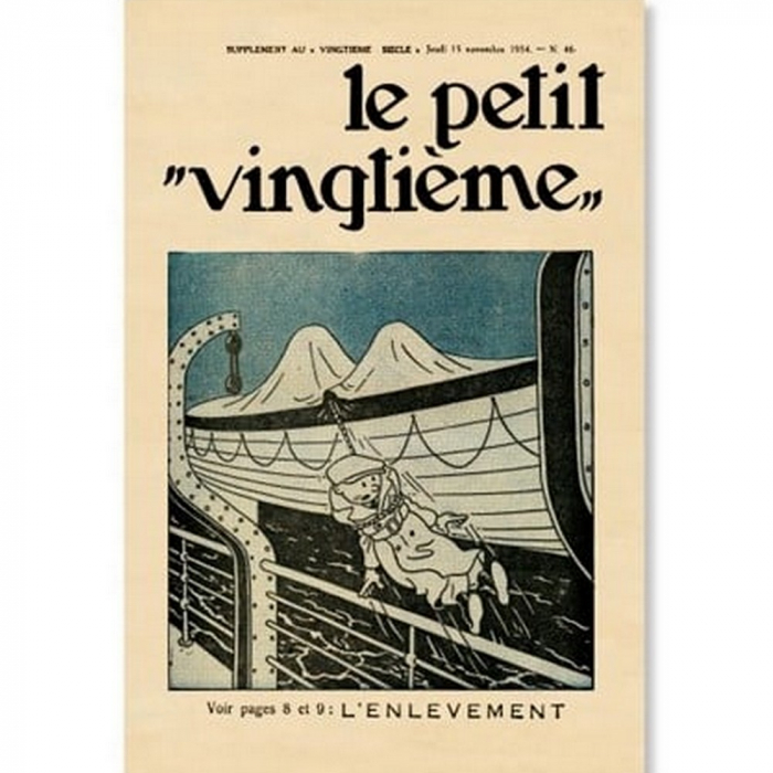 This Tintin poster is a reproduction of the French cover of Le Petit Vingtième N°46: The Blue Lotus. Dimensions: 40x60cm.