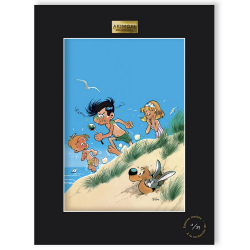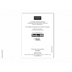 This art offset poster derived from the Billy and Buddy comic, Roba is printed on a thick art paper Conquéror Connoisseur 100% cotton / 315g. Each copy is framed in a black Marie-Louise adorned with an Akimoff Collections pewter plaque. Limited edition and numbered 99 copies. Dimensions: 30x40cm. The beast is released.