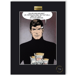 This art offset poster derived XIII comic FROM William Vance and Jean Van Hamme, book is printed on a thick art paper Conquéror Connoisseur 100% coton / 315g. Each copy is framed in a black Marie-Louise adorned with an Akimoff Collections pewter plaque. Limited edition and numbered 99 copies. Dimensions: 30x40cm. Rien du tout.