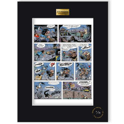 This art offset poster derived from Franquin Gaston Lagaffe comic book is printed on a thick art paper Conquéror Connoisseur 100% coton / 315g. Each copy is framed in a black Marie-Louise adorned with an Akimoff Collections pewter plaque. Limited edition and numbered 99 copies. Dimensions: 30x40cm. Electric bike.