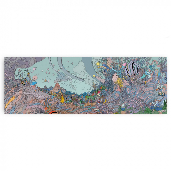 Official licensed product in art edition printed on Novatech semi-matte 250g paper. Frame not provided. Moebius Le Saut de l'Ange - Part.1. Jean Giraud. Dimensions: 100x35cm.