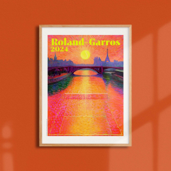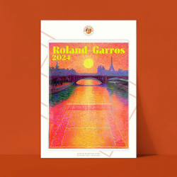 Official licensed product in art edition printed on 200g Fedrigoni paper. Frame not provided. Printed in France. Each poster has a blind stamp at the bottom right, certifying its authenticity. Roland-Garros Paris 2024. Paul Rousteau.
