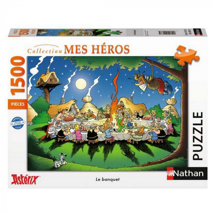This 1500 pieces Nathan Astérix puzzle features this scene: The Banquet. Dimensions: 80x60cm.