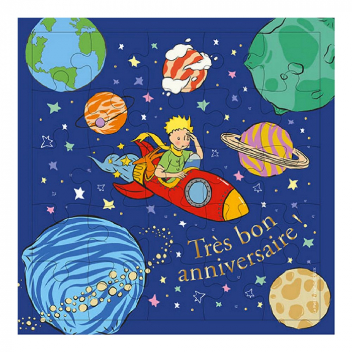 25 pieces child puzzle The Little Prince, Très Bon Anniversaire ! Cardboard puzzle. Dimensions of the Puzzle 17,5x17,5cm.