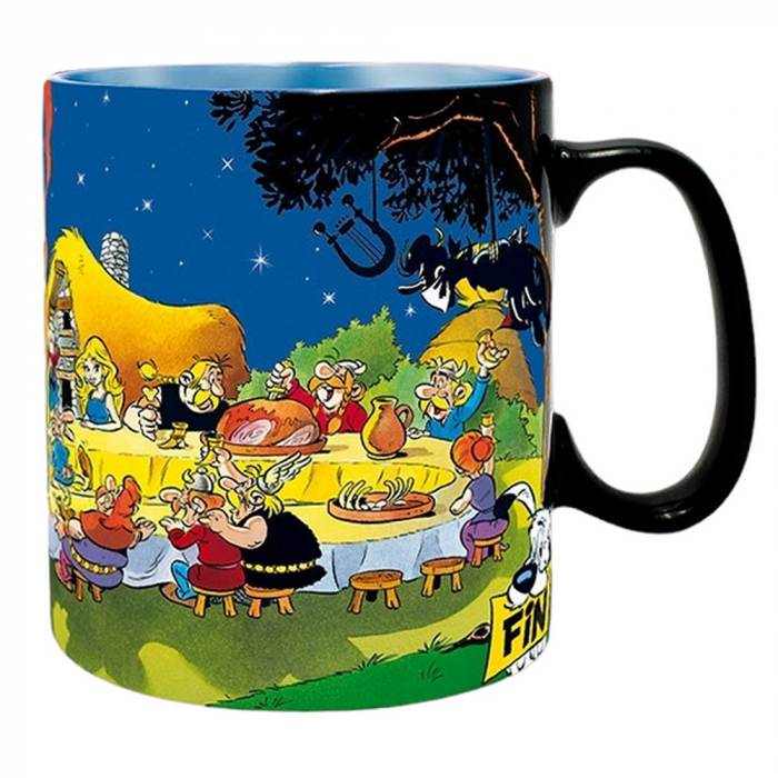 Thermoreactive Ceramic mug from the french brand The Good Gift Astérix. Relive the mythical scene of the Gaulish banquet with this mug as magical as the Panoramix Druid potion. This thermoreactive mug by The Good Gift design changes when you pour hot liquid. Not suitable with microwave and dishwasher. 460ml. Banquet.