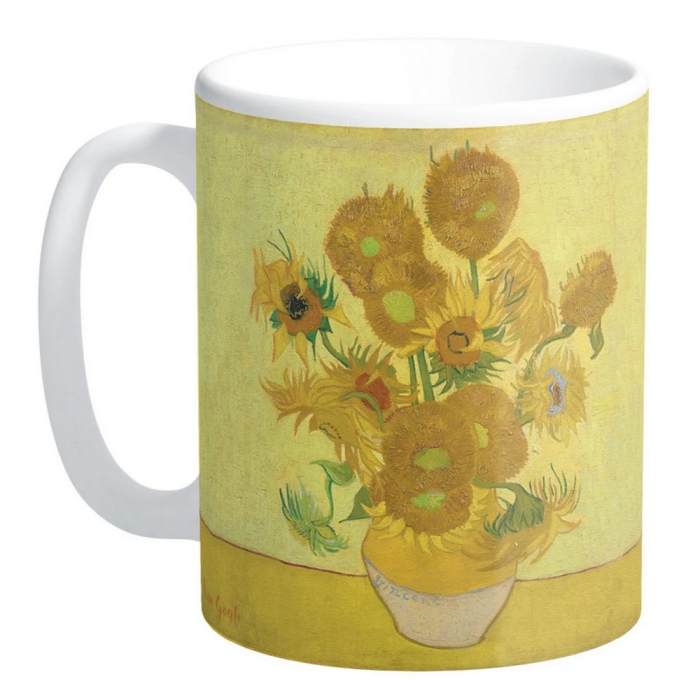 Quality porcelain mug from the brand Enesco Vincent Van Gogh: Sunflowers. Ideal for a gift! Compatible with microwave and dishwasher. The cup is official and licensed. Height: 9,5cm.