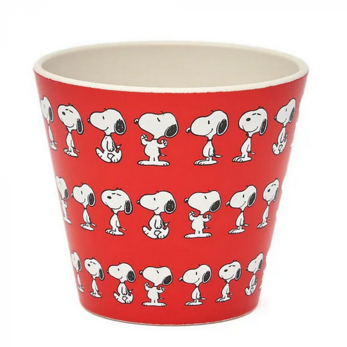 QuyCup Espresso coffee cup Peanuts Snoopy: Red. Made of food-safe R-PET (recycled PET). Perfect for hot and cold drinks. Odor and flavor are eliminated (BPA-free). Heat resistant +120°C -20°C. Ideal as a gift, microwave and dishwasher safe. 90ml.