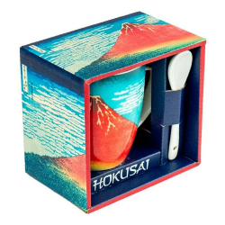 Porcelain mug and spoon quality Enesco brand from Katsushika Hokusai: The Red Fuji. Officially licensed product. Height: 10,5cm.