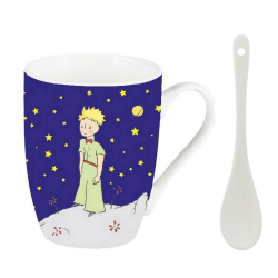 Porcelain cup and spoon quality Enesco brand from The Little Prince on his planet. Based on the original drawings by Antoine de Saint-Exupery. Officially licensed product from The Little Prince. Height: 7cm.