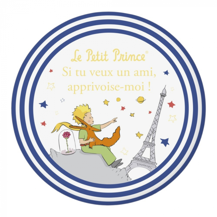 Decorative round magnet The Little Prince pointing at the Eiffel Tower. 55mm.