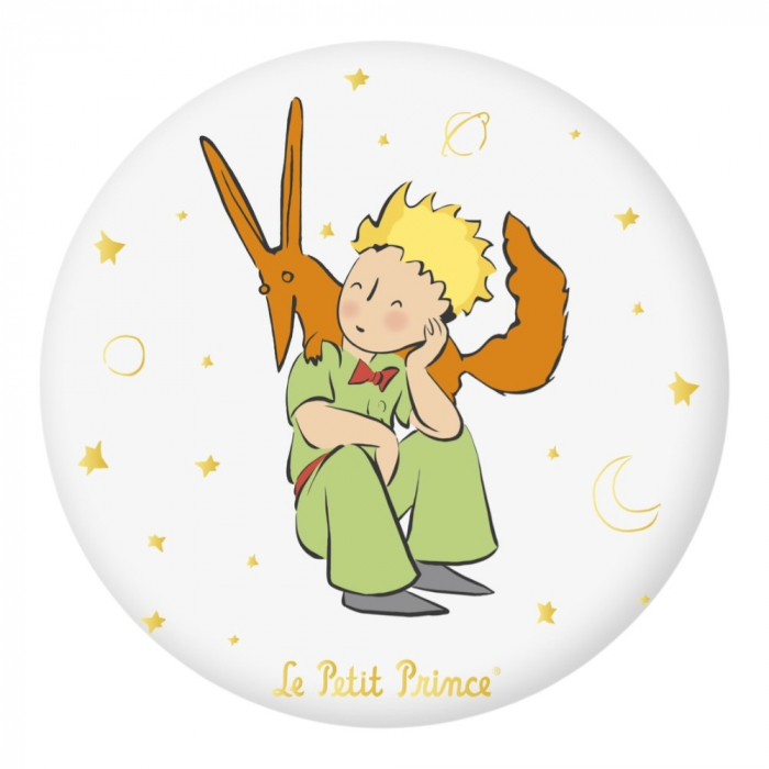 Decorative round magnet The Little Prince with the fox on his shoulders. 55mm.