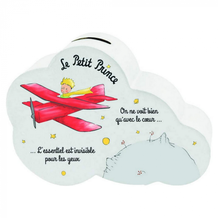 This ceramic moneybox of The Little Prince by plane is inspired by the work of Antoine de Saint-Exupery and was created by Enesco. The Little Prince by plane. Height: 10cm.