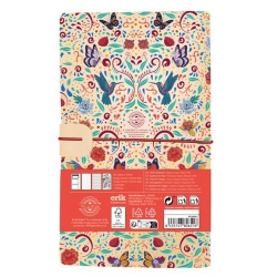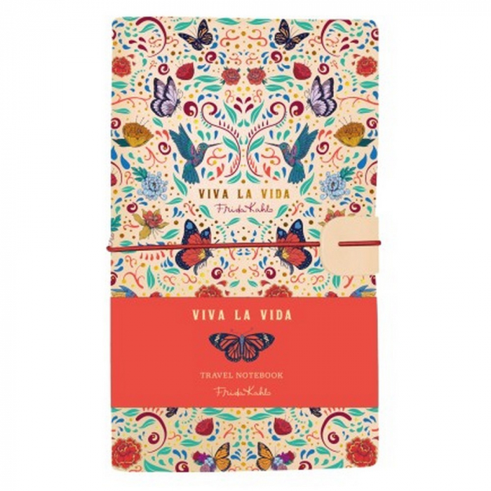 Travel Notebook Erik, Frida Kahlo. Synthetic leather soft cover and elastic band to close it. Inner covers with custom design. Dimensions: 12x19,5cm.