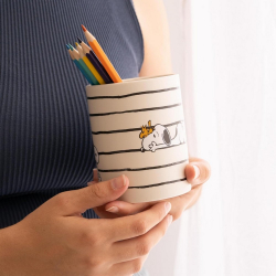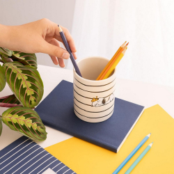 This ceramic Snoopy pencil holder is both practical and decorative. It is perfect for storing your pencils, pens and other school supplies while adding a fun touch to your desk.