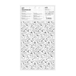 Set of 2 folded wrapping paper sheets 50x70cm 70gsm. Includes paper ribbon and stickers.