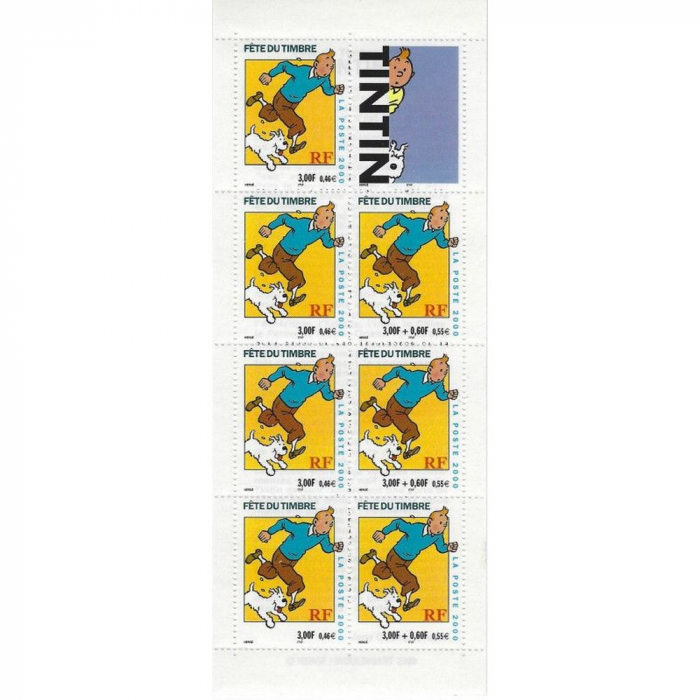 Board of 7 postage stamps for the benefit of the Croix-Rouge Française, Fête du timbre series issued in 2000. Tintin and Snowy.