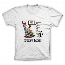 Lucky Luke T-Shirt, Ma Dalton knitting Home Sweet Home. This T-shirt is an absolute must-have for all fans of Lucky Luke. Perfectly shaped. White color.