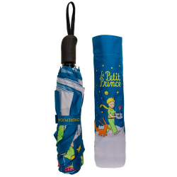 Umbrella The Little Prince on his planet with Fox and Rose. Thanks to its durable, 100% waterproof fabric and sturdy handle, it will accompany you throughout your journey in this vast world. Includes a waterproof protective pouch. Folded length: 30cm. Dimensions in open position: 121cm in diameter.
