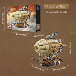 Pantasy Steampunk Collection Building Set: The Airship. Inspired by the mighty zeppelins of the past, this double-decker airship brings a science-fiction vision to life. The set consists of 1949 pieces. The recommended minimum age is 12 years. Includes an instruction manual. Height: 34cm.